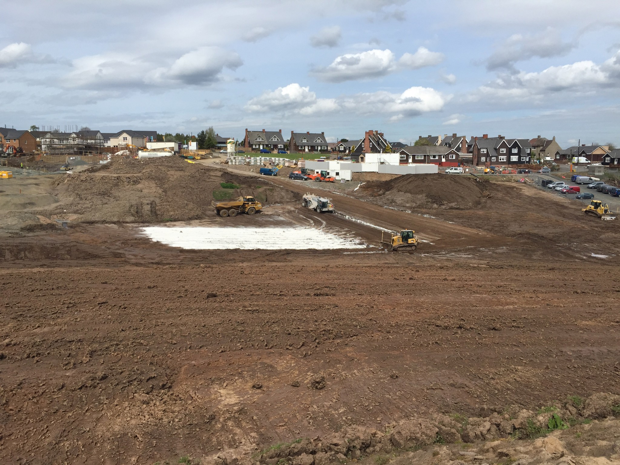 Mixing platforms which posed the potential to generate dust where placed away from the site boundary to ensure that no neighbouring properties were affected. During dry periods the site was damped down using our own tractor bowser to stop material becoming airborne.