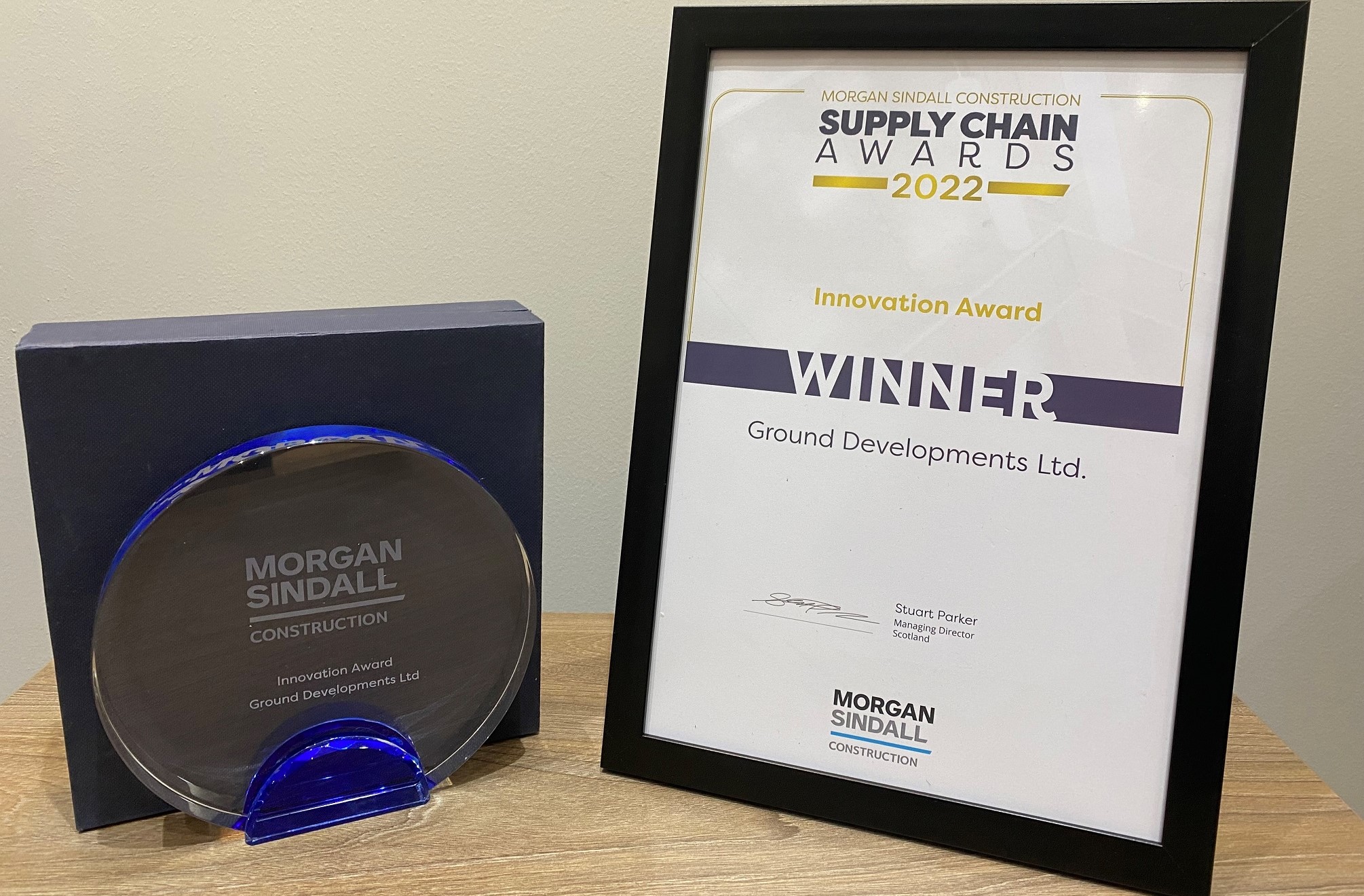 Kevin Mackenzie, Managing Director of Ground Developments (GDL) said, “As a company we always strive to be leaders in our industry and to embrace the latest technology to offer our clients the best overall solution delivered on time, on budget and to the highest quality. We are very happy this has been recognised by Morgan Sindall and to have received this award”.