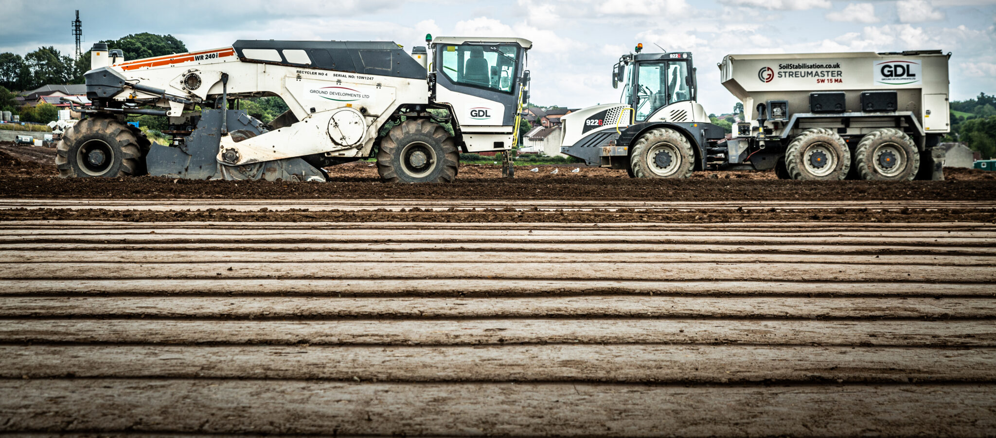 The required dose of lime or cement binder is then spread over the materials that are undergoing treatment using a computer-controlled binder spreader. The type and quantity of binder that is required for each project is determined through initial design testing that is undertaken prior to site start and then on an ongoing basis to allow for variations in the ground.
